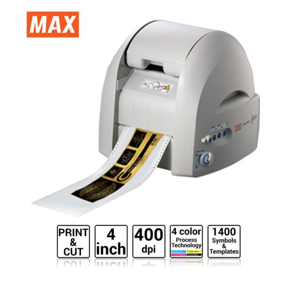 MAX CPM-100HG5 4 inch wide sign and label printing and cutting machine. The CPM-100HG5 combines thermal print and vinyl-cutting technology, together with our tried and tested software, to product multiple spot, or full-color outputs.