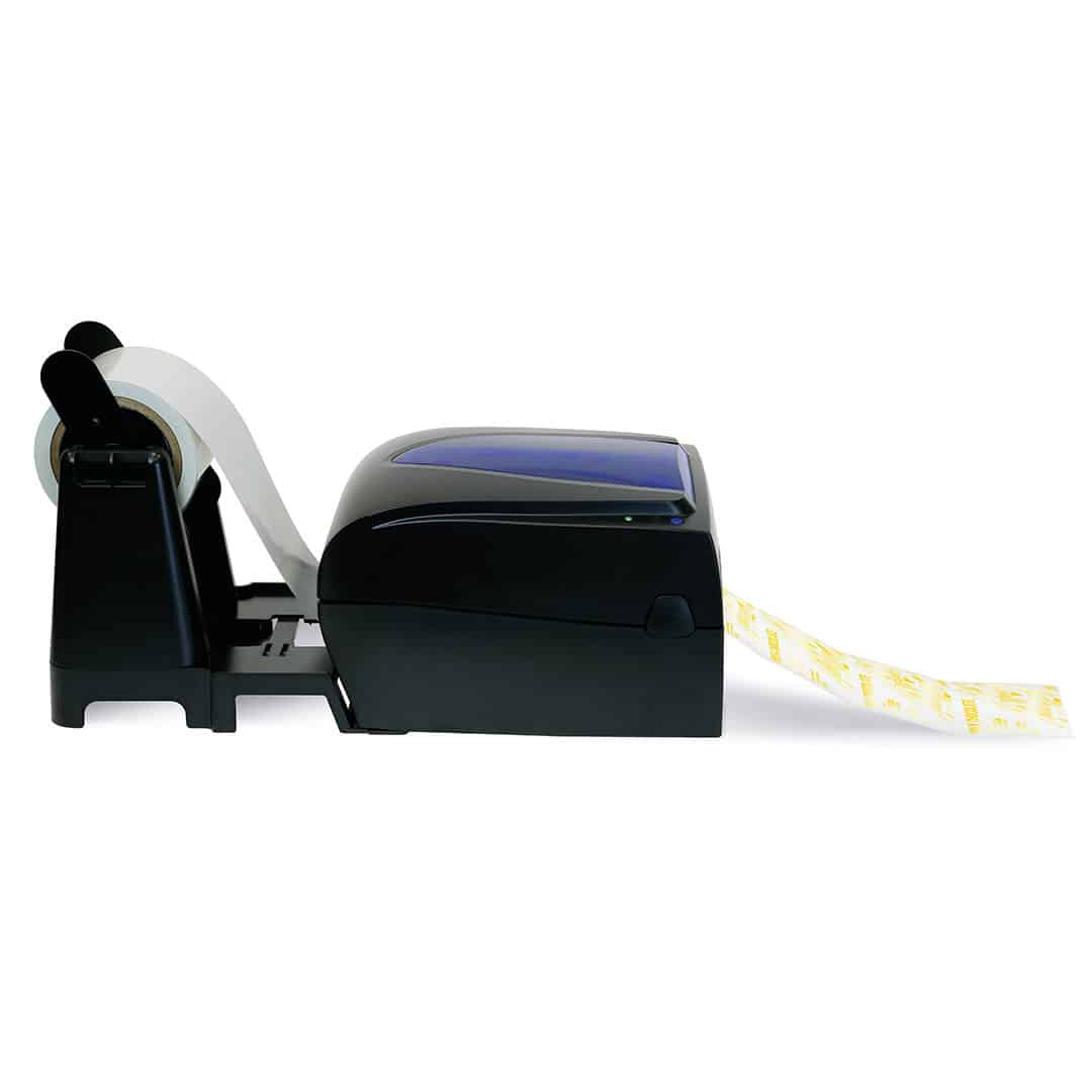 Media Types: Roll-fed continuous, die-cut or blackmark labels or tags; roll-fed tags with punched hole