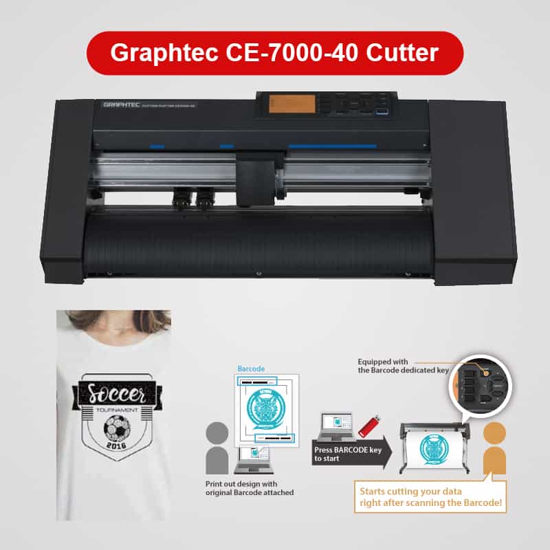 By reading the Graphtec original Barcode, CE7000 automatically detects its linked data from PC or USB flash memory. This function is available regardless of which printer or RIP software is used.
